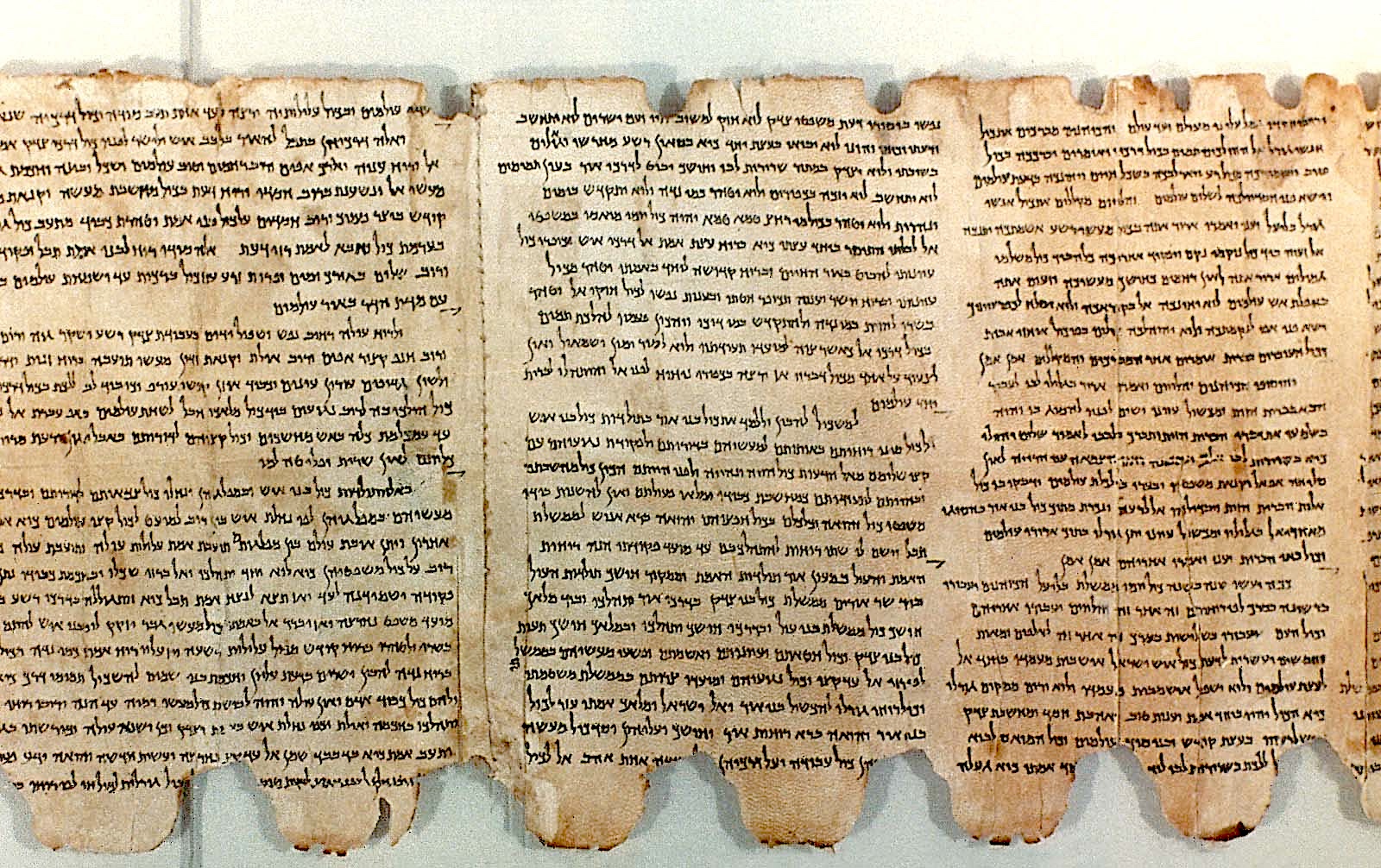 Many biblical manuscripts closely resemble the Masoretic Text, the accepted text of the Hebrew Bible from the second half of the first millennium ce until today. This similarity is quite remarkable, considering that the Qumran Scrolls are over a thousand years older than previously identified biblical manuscripts. Strikingly, some biblical manuscripts feature differences from the standard Masoretic biblical language and spelling. Additions and deletions in certain texts imply that the writers felt free to modify texts they were copying. (Israel Antiquities Authority, IAA, Leon Levy Dead Sea Scrolls Digital Library)